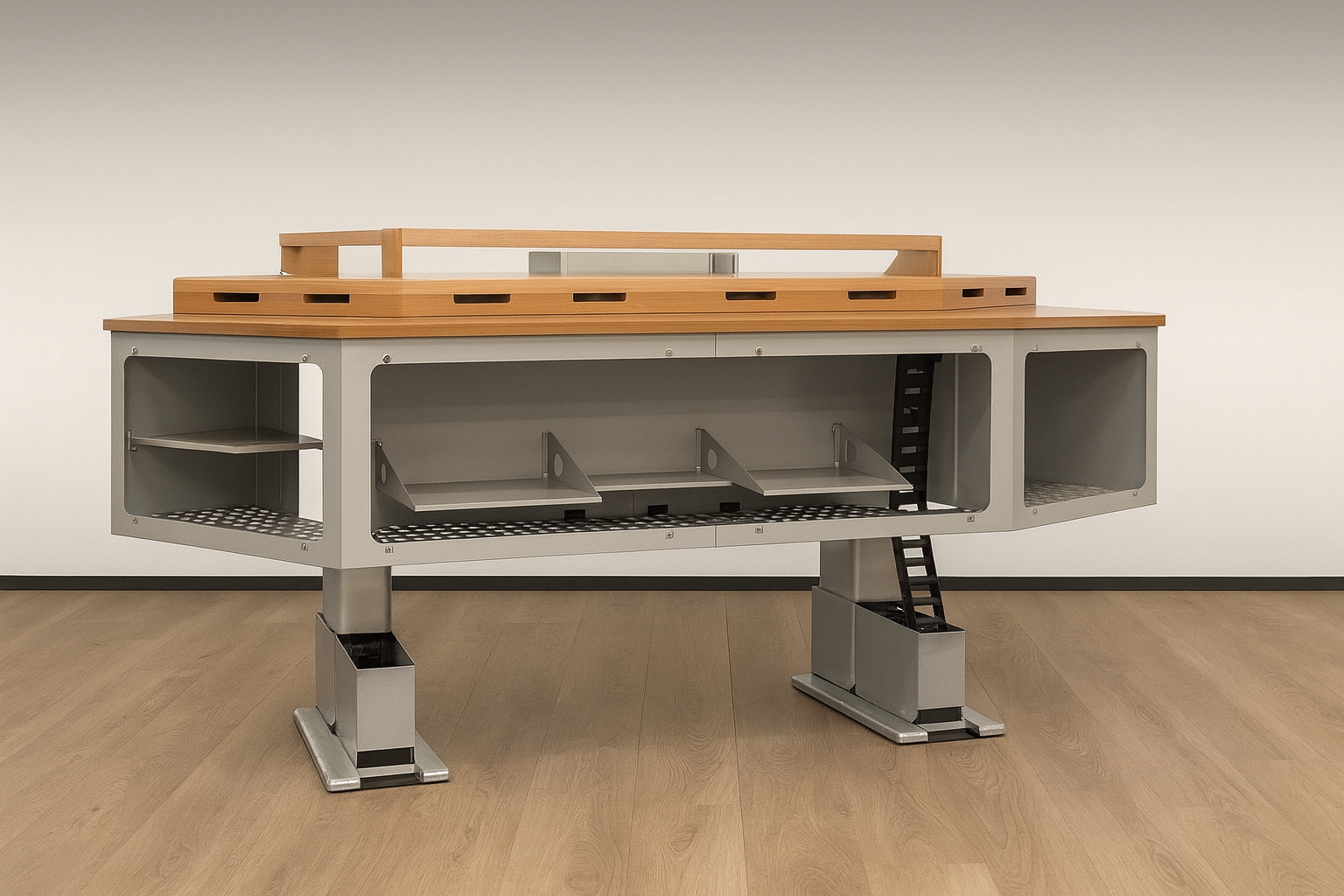ErgoDesk Operator er ikke et standard bord, men en teknisk plattform for kontrollrom, som integrerer ergonomi, konstruksjon og teknologi i én helhetlig løsning.