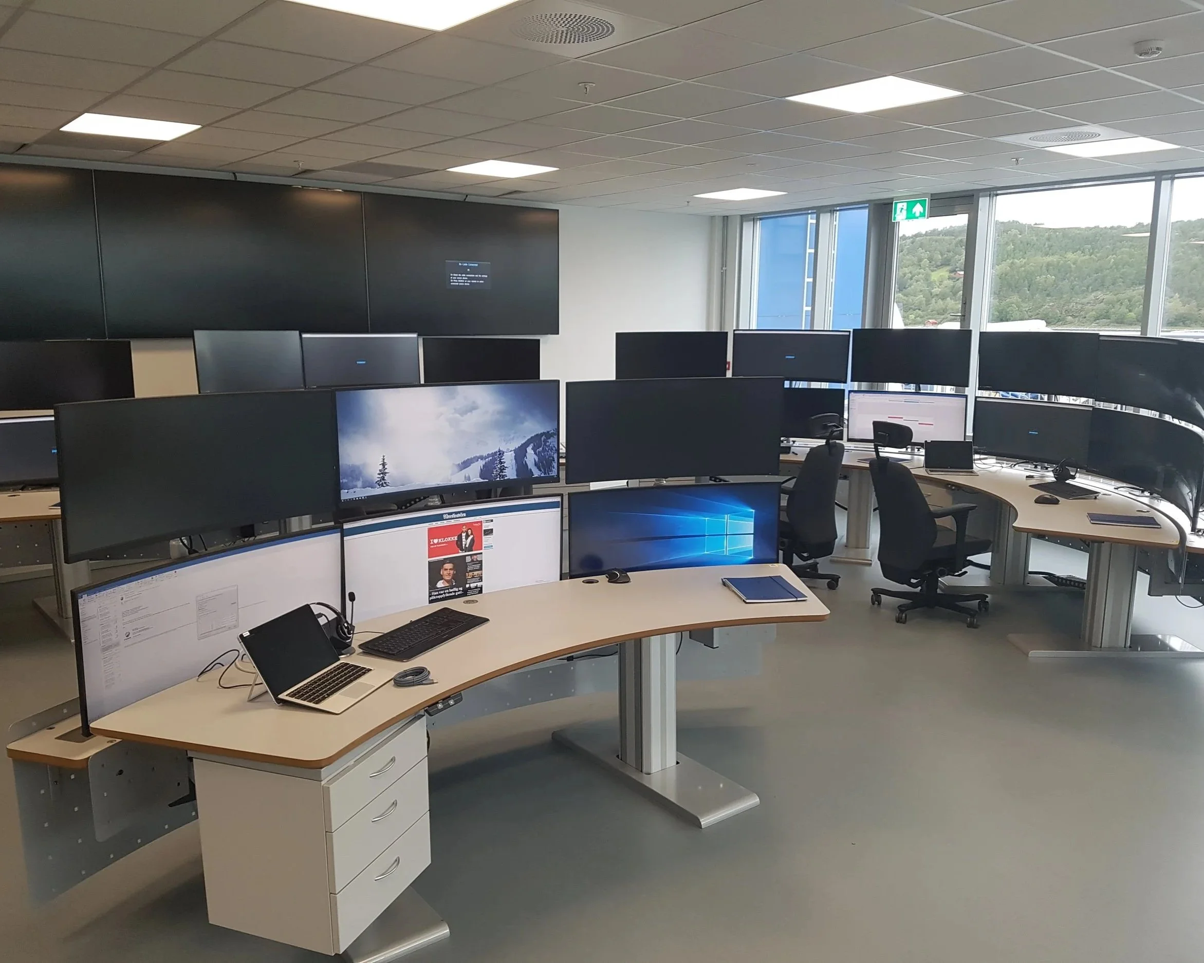 Vi hjelper med planlegging av operatørplasser, skjermoppsett og teknisk integrasjon