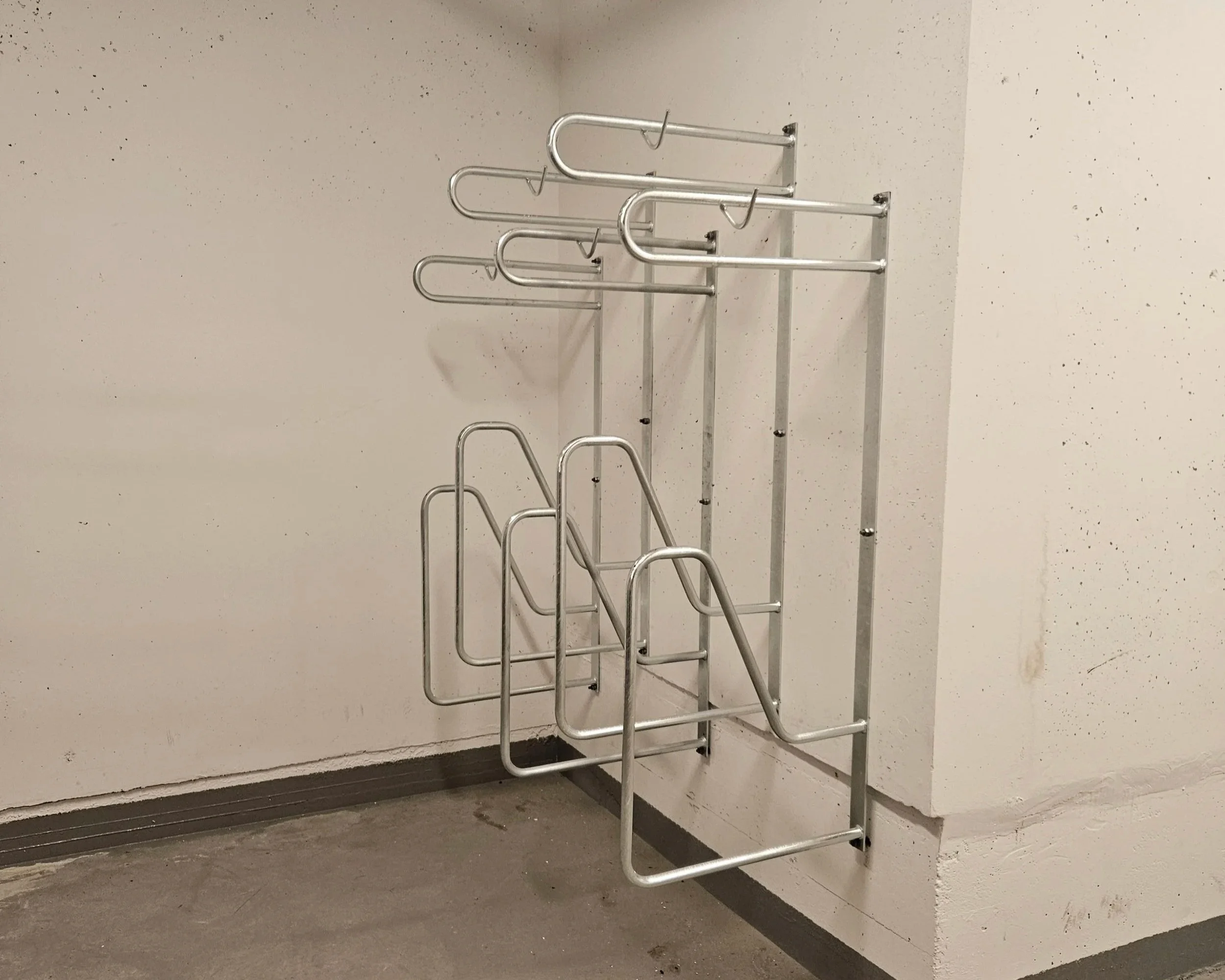Ved å montere syklene direkte på vegg frigjøres verdifull gulvplass. SR vegghengt sykkelstativ er ideelt der arealet er begrenset, og der effektiv organisering av sykkelparkering er avgjørende – for eksempel i borettslag, sameier og næringsbygg.