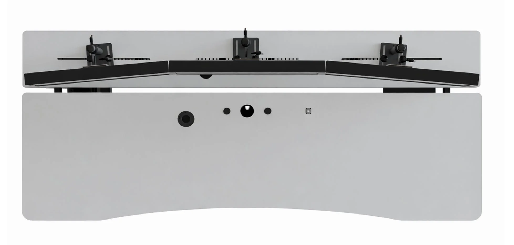 Fullt teknisk rom under monitorhylle, uten inngrep i operatørens benplass