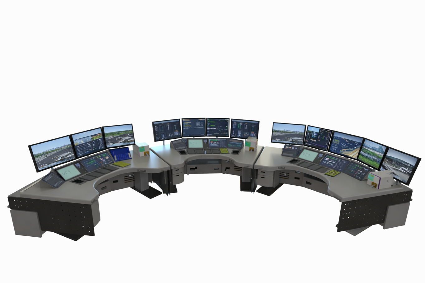 Tårnpult til luftfartsindustrien. Mye innfelt utstyr.